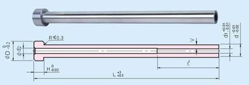 頂針、司筒是模具行業(yè)最常用零部件。頂針與司筒配合使用。司筒零件最典型的特點(diǎn)是內(nèi)孔為臺(tái)階孔,臺(tái)階孔內(nèi)徑相差0.5~1.0mm。該臺(tái)階孔的加工,是司筒零件整個(gè)加工過(guò)程中最大的難點(diǎn)。